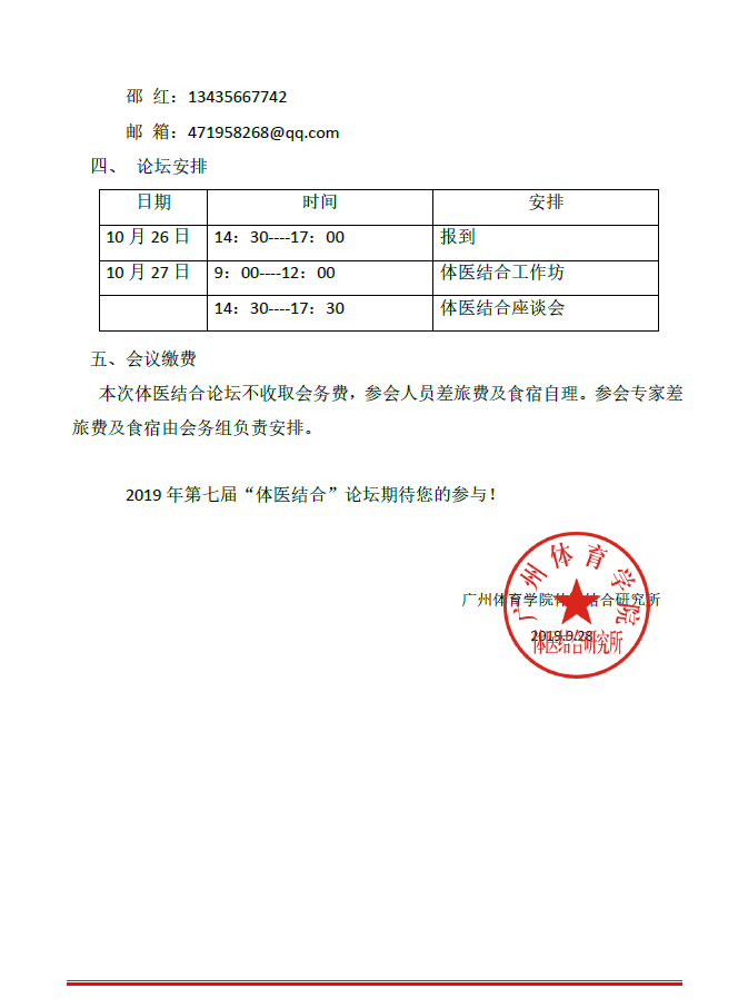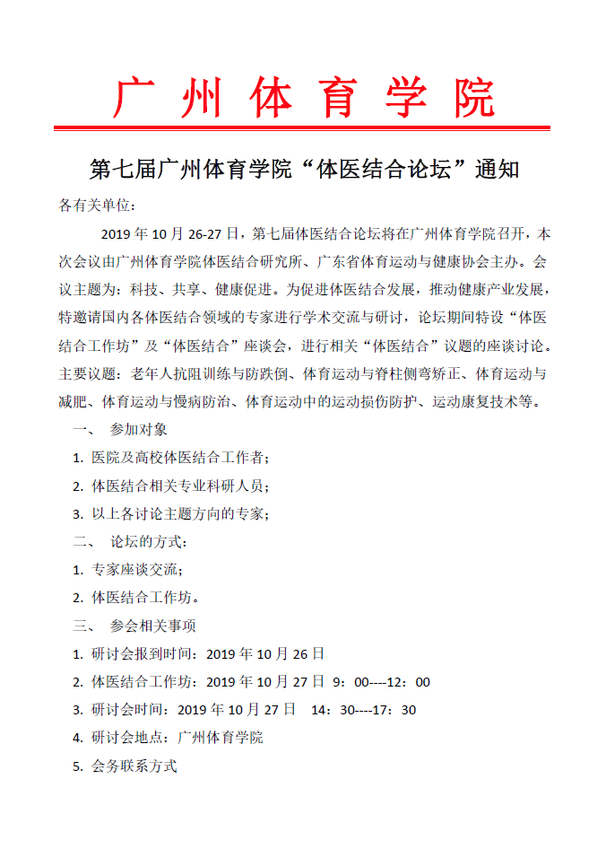 第七届599比分网 “体医结合论坛”通知