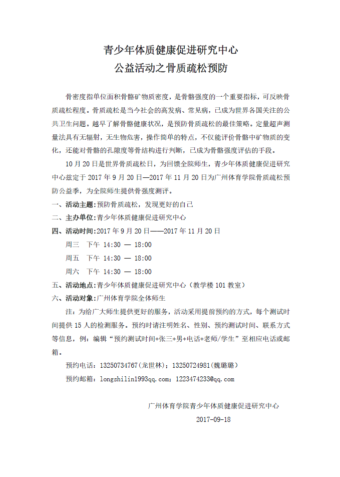 青少年体质健康促进研究中心公益活动之骨质疏松预防