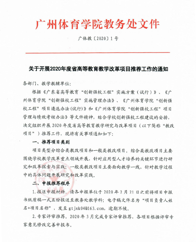关于开展2020年度省高等教育教学改革项目推荐工作的通知