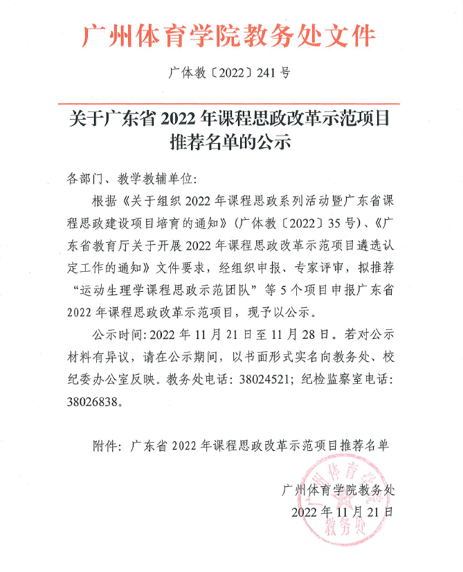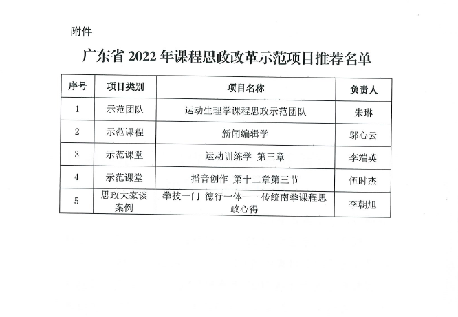 关于广东省2022年课程思政改革示范项目推荐名单的公示