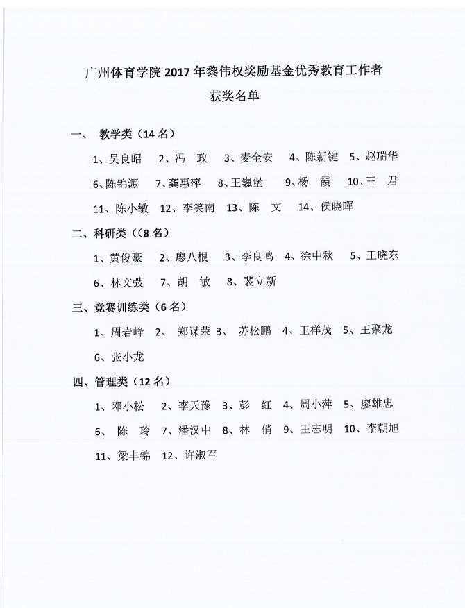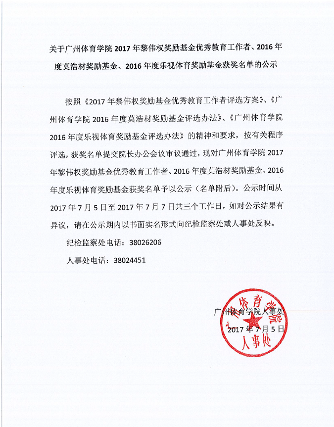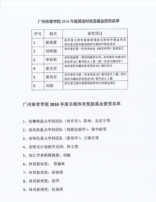 关于599比分网 2017年黎伟权奖励基金优秀教育工作者、2016年度莫浩材奖励基金、2016年度乐视体育奖励基金获奖名单的公示